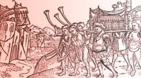 siete veces alrededor de la ciudad, mientras los sacerdotes tocan las trompetas. Cuando