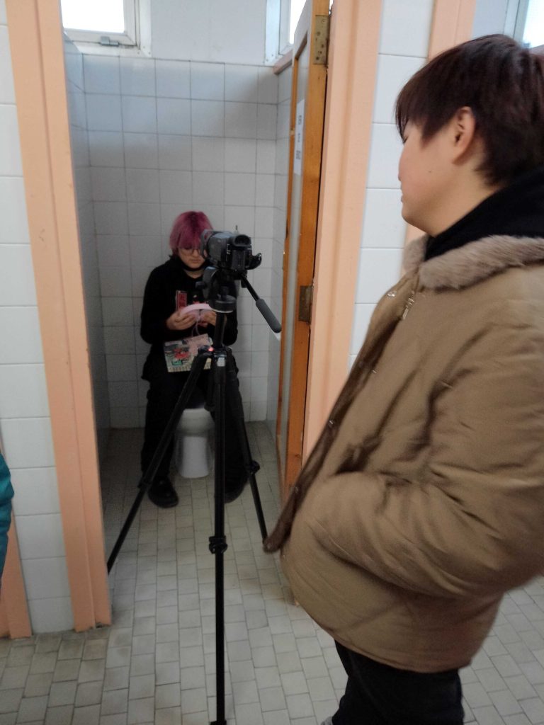 Un grupo de alumnos y alumnas de este nivel formaron el equipo técnico y, tras tres reuniones iniciales, la mayor parte de la elaboración del guion y el rodaje se realizó durante un fin de semana de encierro en el instituto en el mes de diciembre: aislados del exterior, estudiantes y profes, avanzaron en el desarrollo de la historia y convivieron transformando el aula del patio en un confortable apartamento, mientras en el exterior no dejaba de llover. Hubo tiempo para ver cine con palomitas, aprender con Ignacio Cólera y Carlos Moreno, hacer castings, escribir, grabar, cocinar… y reír.