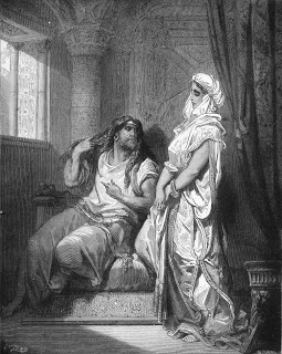 Antes del reinado de Saúl y de David, cuando las tribus de Israel vivían separadas unas de otras, los israelitas comenzaron a adorar a Baal y Astarté. OfendidoYahveh, puso a los israelitas en manos de los filisteos durante cuarenta años. Pero cuando clamaron a su Dios, éste se apiadó de ellos y decidió enviarles un salvador que los liberara de su opresión. Así pues, Yahveh envió un ángel a la morada de Manóaj, cuya mujer era estéril. El ángel reveló a la mujer que pronto concebiría un niño, salvador del pueblo de Israel. Tal y como afirmó el ángel, la mujer de Manóaj quedó encinta y dio a luz a un niño, que se llamó Sansón. El espíritu de Yahveh lo bendijo con fuerza sobrehumana.